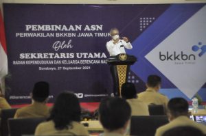 Bangga Kencana || Surabaya – Sekretaris Utama (Sestama) Badan Kependudukan Keluarga Berencana (BKKBN) Pusat, Drs. Tavip Agus Rayanto, M.Si., melakukan pembinaan ASN diruang lingkup kerja Perwakilan BKKBN Provinsi Jawa Timur, Senin (27/9/2025) di Kantor Perwakilan BKKBN Jawa Timur, jalan Airlangga 31-33, Surabaya, Senin (27/9/2025).